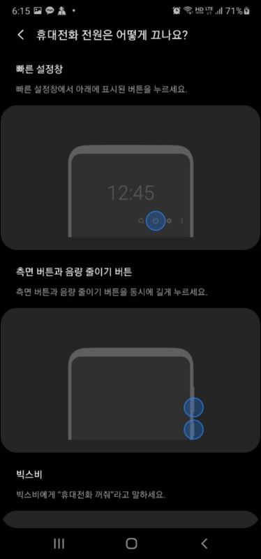 빅스비만 켜질뿐 전원을 끌 방법을 찾지 못했습니다.