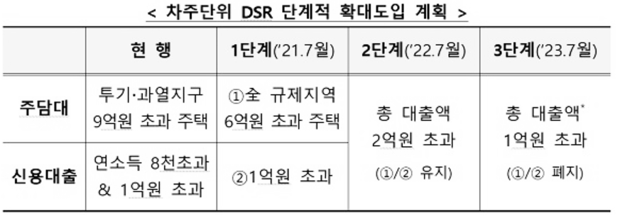 2021년 7월부터 규제지역 6억이 넘는 집을 맡기고 돈을 빌릴때 DSR 40%적용라고 밝혔습니다. 또한 비주거용 부동산도 이제는 LTV가 도입된다고 하지요.