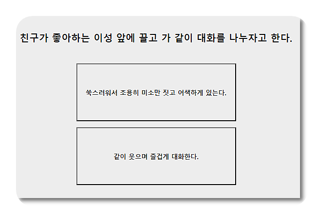 좋아하는 이성앞에서 하는 행동등으로 성격을 테스트 하는군요. 물론 재미삼아겠지만요