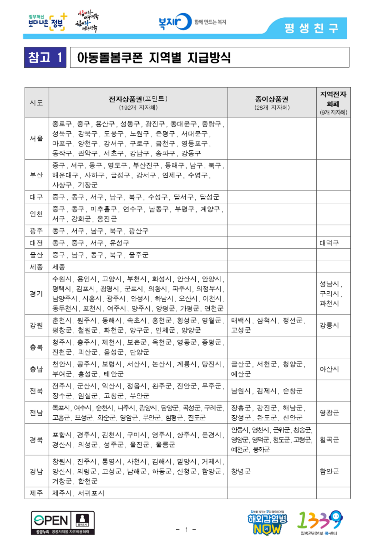 아동돌봄쿠폰 지역 전자화폐 선택 지역 및 지역별 제도 개요