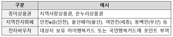 지역전자화폐 전자바우처 등 지방자치단체별 여건에 맞는 방식으로 이뤄질 예정입니다