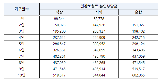 (직장) 237,652원, (지역) 254,909원, (혼합) 242,715원