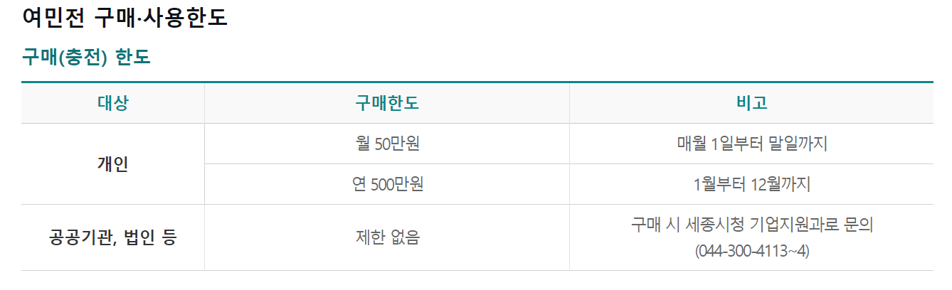 여민전 구매/사용한도